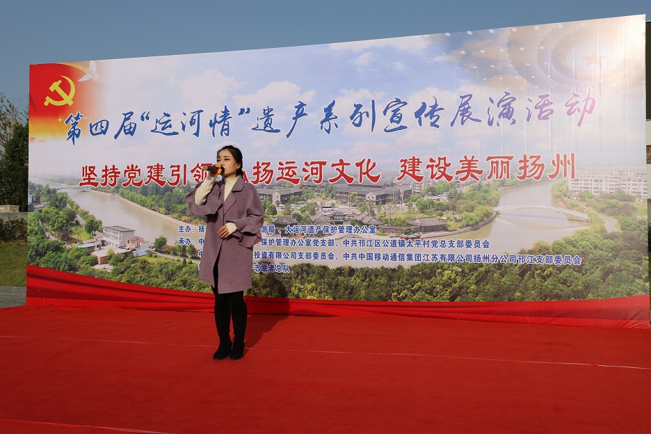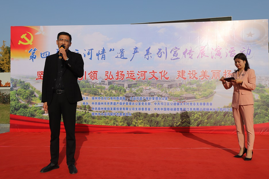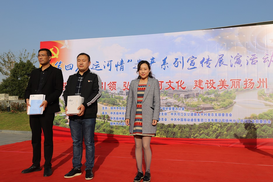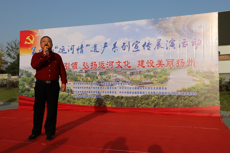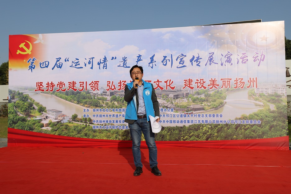 本次活動(dòng)由揚州市文化廣電和旅游局、大運河遺產(chǎn)保護管理辦公室主辦,由中共揚州市世界遺產(chǎn)保護管理辦公室支部委員會(huì )、中共揚州市邗江區公道鎮太平村總支部委員會(huì )、中共揚州維揚發(fā)展投資有限公司支部委員會(huì )、中共中國移動(dòng)通信集團江蘇有限公司揚州分公司邗江支部委員會(huì )、揚州市大運河保護志愿者總隊聯(lián)合承辦。